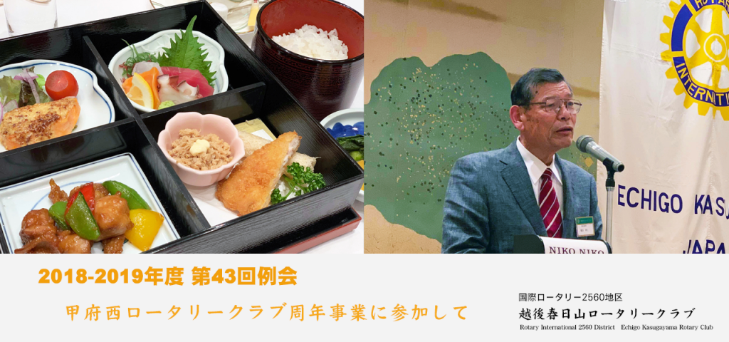 平成31年4月14日(日)に甲府西ロータリークラブ様の45周年記念式典が行われ、当クラブからは宮田会長をはじめとする10名が参加しました。