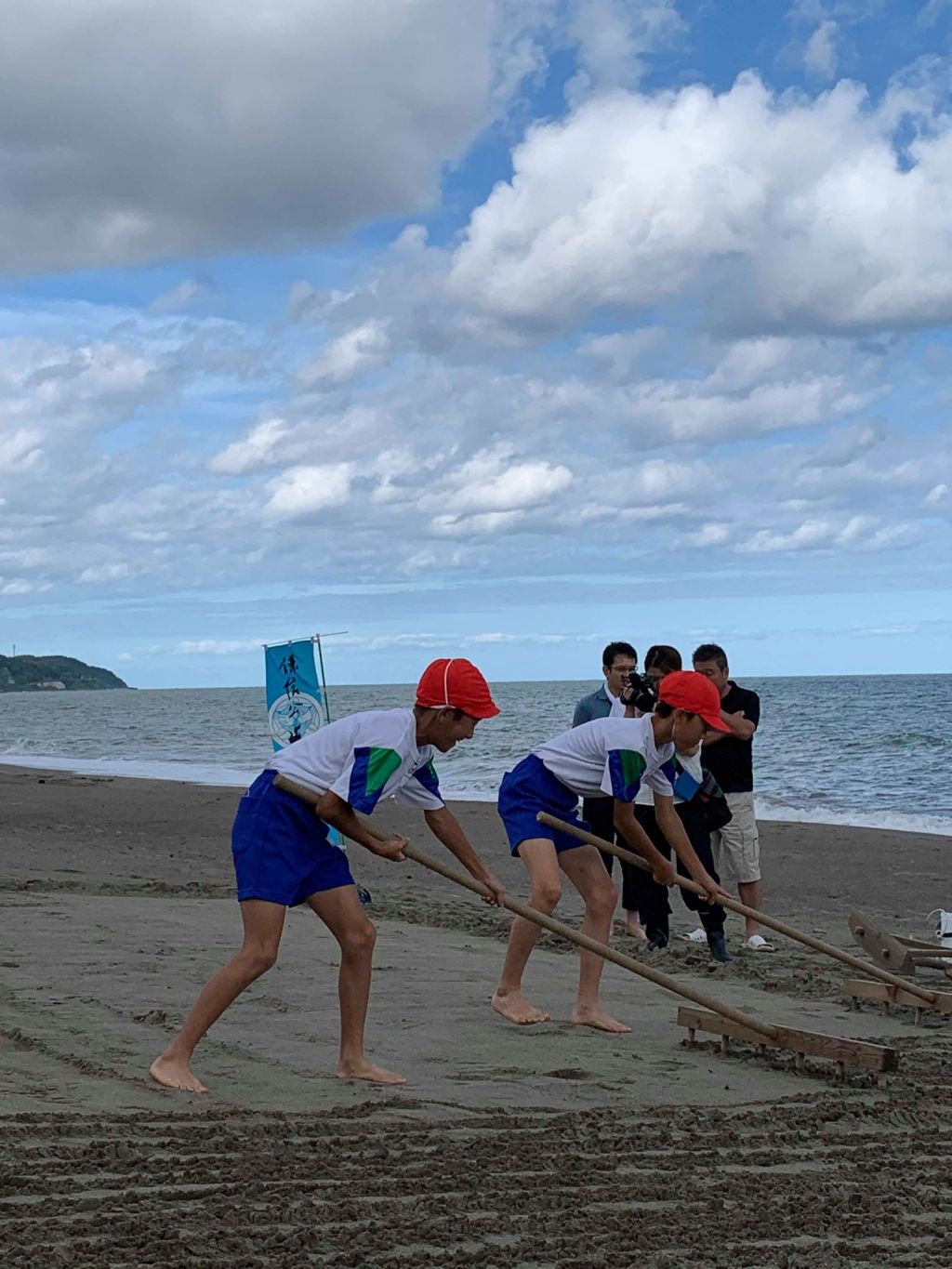 9月12日木曜日、2005年からの継続事業で、地元・谷浜小学校様が行っている上杉謙信公に因んだ「義の塩づくり体験学習」への支援奉仕活動を今年も上越市・谷浜海水浴場で行いました。昔ながらの塩作りを体験して「謙信公の義の心」や、この地に伝わる歴史文化を学ぼうという学習です。