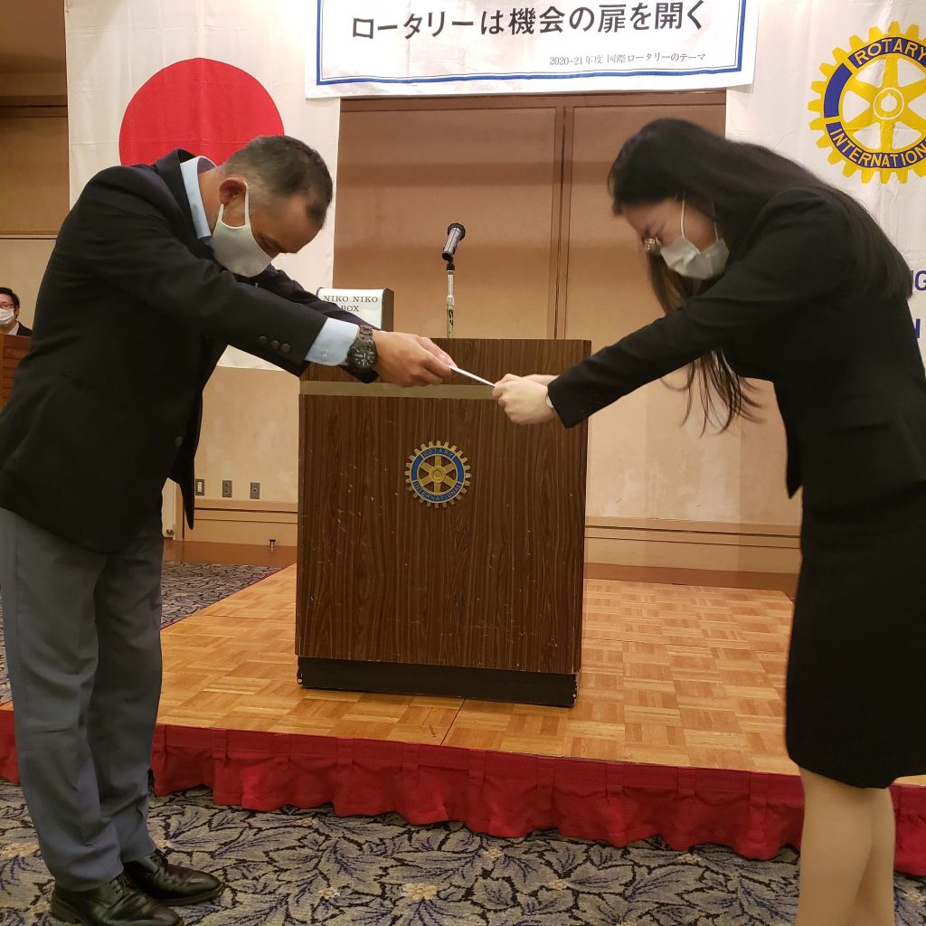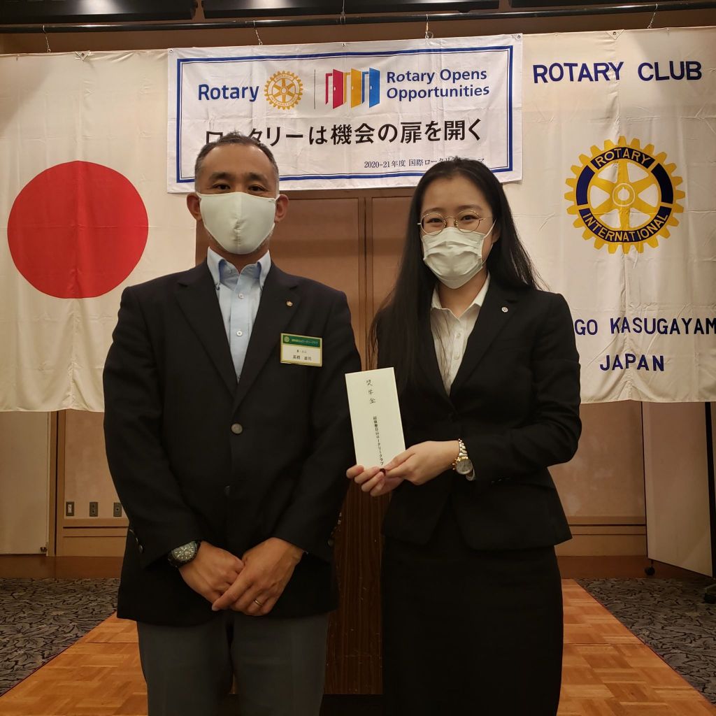 10/1(木)第14回例会を開催しました。上越市埋蔵文化財センターに植樹した桜の木の手入れが天候の関係で中止となったため、短縮例会として開催し、留学生の奨学金授与などが行われました。
