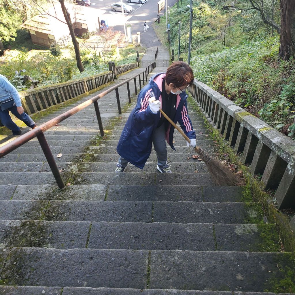 11/5(木)、例会後に奉仕活動として、地域の宝である上杉謙信公居城・春日山城・春日山神社の清掃を行いました。前日の寒さから一転、気持ちの良いお天気の下、会員12名が境内や階段、駐車場のゴミ拾いやホウキで掃くなどしました。
