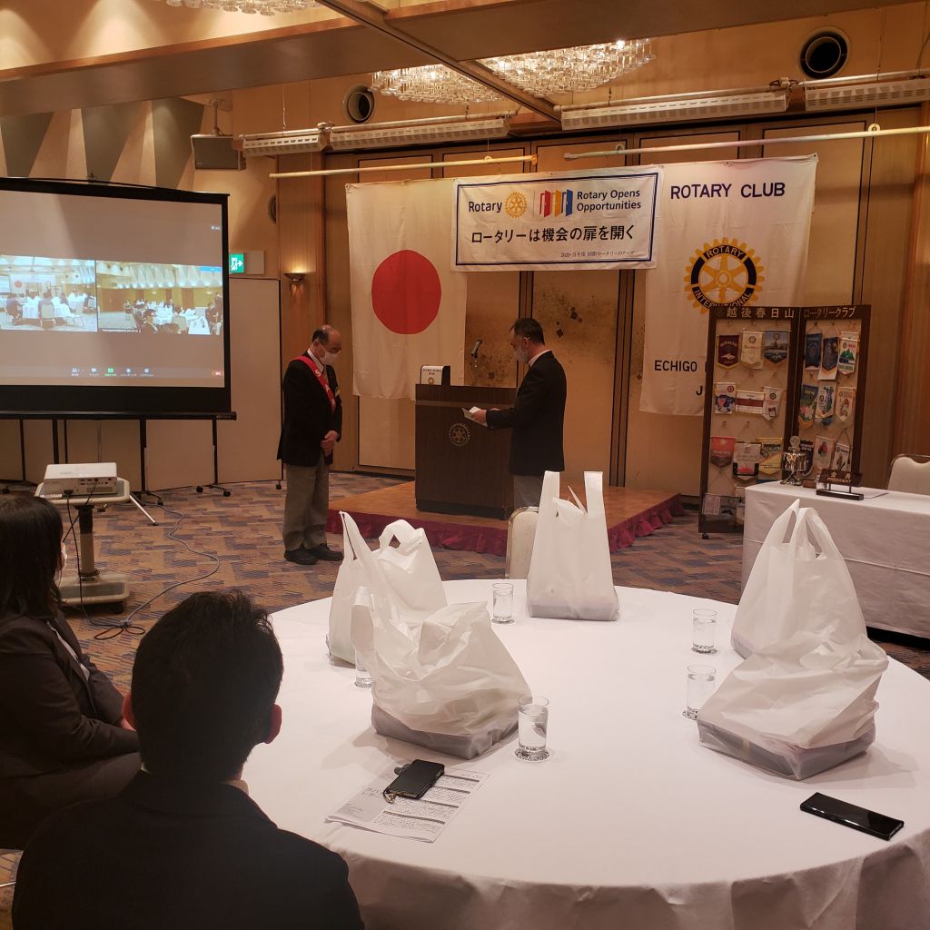 1/21(木)新年2回目となる例会を開催しました。上越地方の大雪を経て2週間ぶりの顔合わせでしたが、新型コロナウィルスの感染対策が一層求められる中今回より当面の間、短縮例会でお弁当お持ち帰りとなりました。