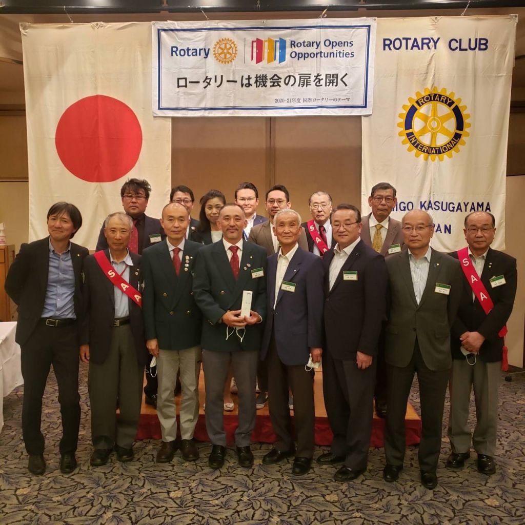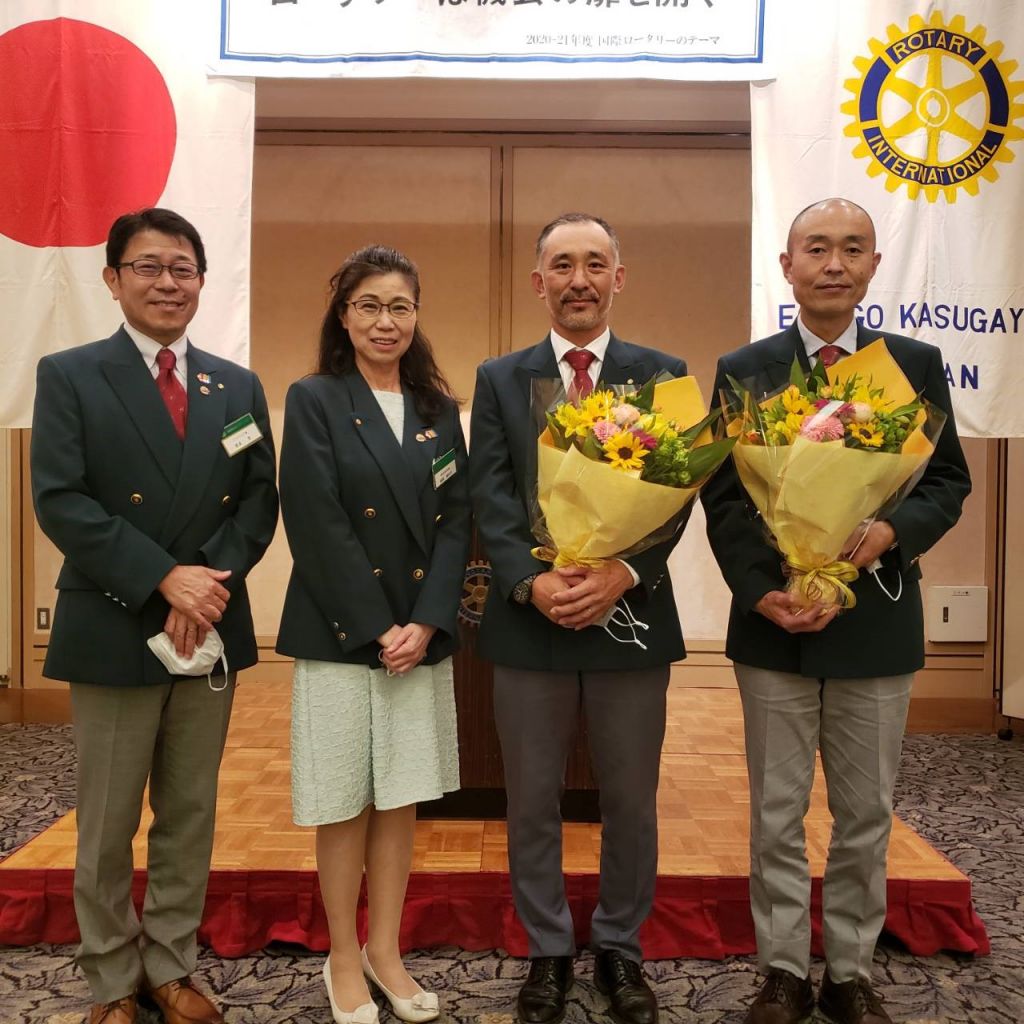 6/24(木)第51回(通算第1369回)例会を開催しました。会員誕生日は稲葉会長エレクト。地区ロータリー財団委員会宮﨑会員へ感謝状授与。皆勤出席者16名の表彰。そして会長・幹事バッチ交換を行いました。