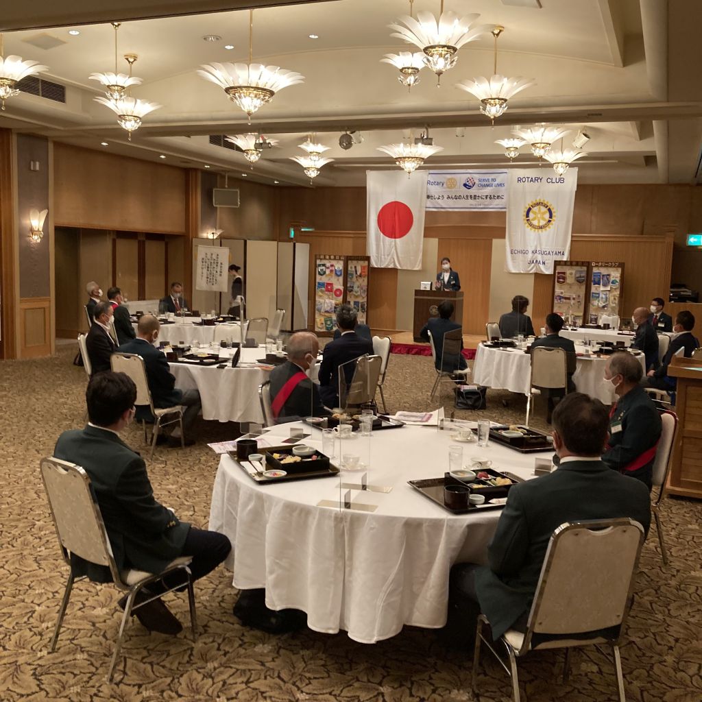 9/2(木)第10回(通算第1379回)例会を開催しました。高尾ガバナー公式訪問(ZOOM)となり、会員はグリーンジャケットと赤いネクタイの着用をしました。君が代斉唱、会長挨拶、お食事と進み、会員ご夫人誕生日は、宮田パスト会長です。本日は卓話ではなく、高尾ガバナー公式訪問(ZOOM)のため、第2560地区第7分区ガバナー補佐風間さんよりガバナー補佐講話がありました。この後、クラブ全員での集合写真撮影があり、別室にて、高尾ガバナー公式訪問(ZOOM)となりました。