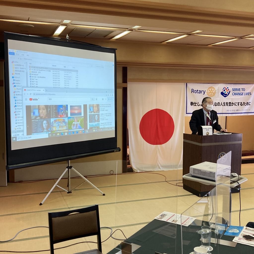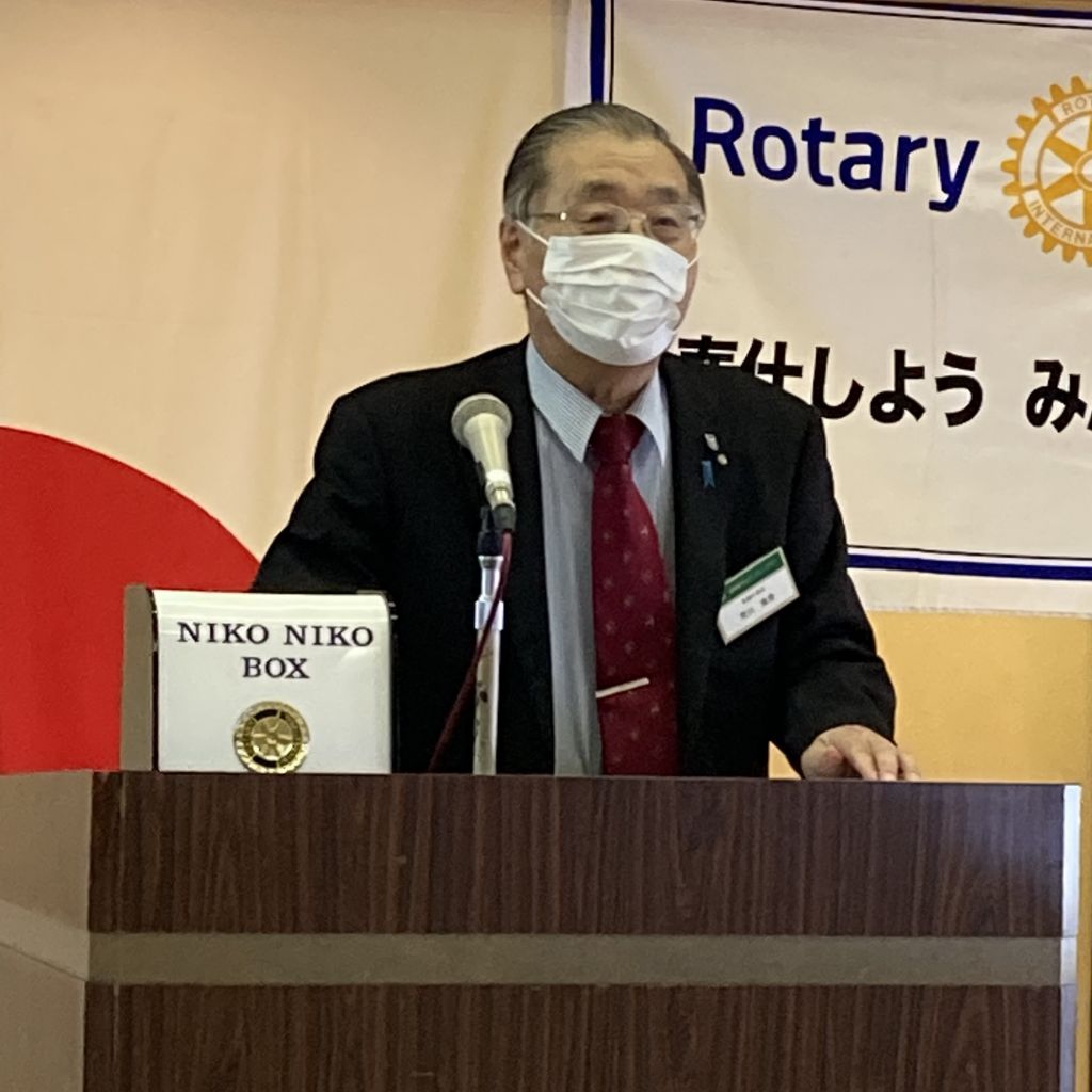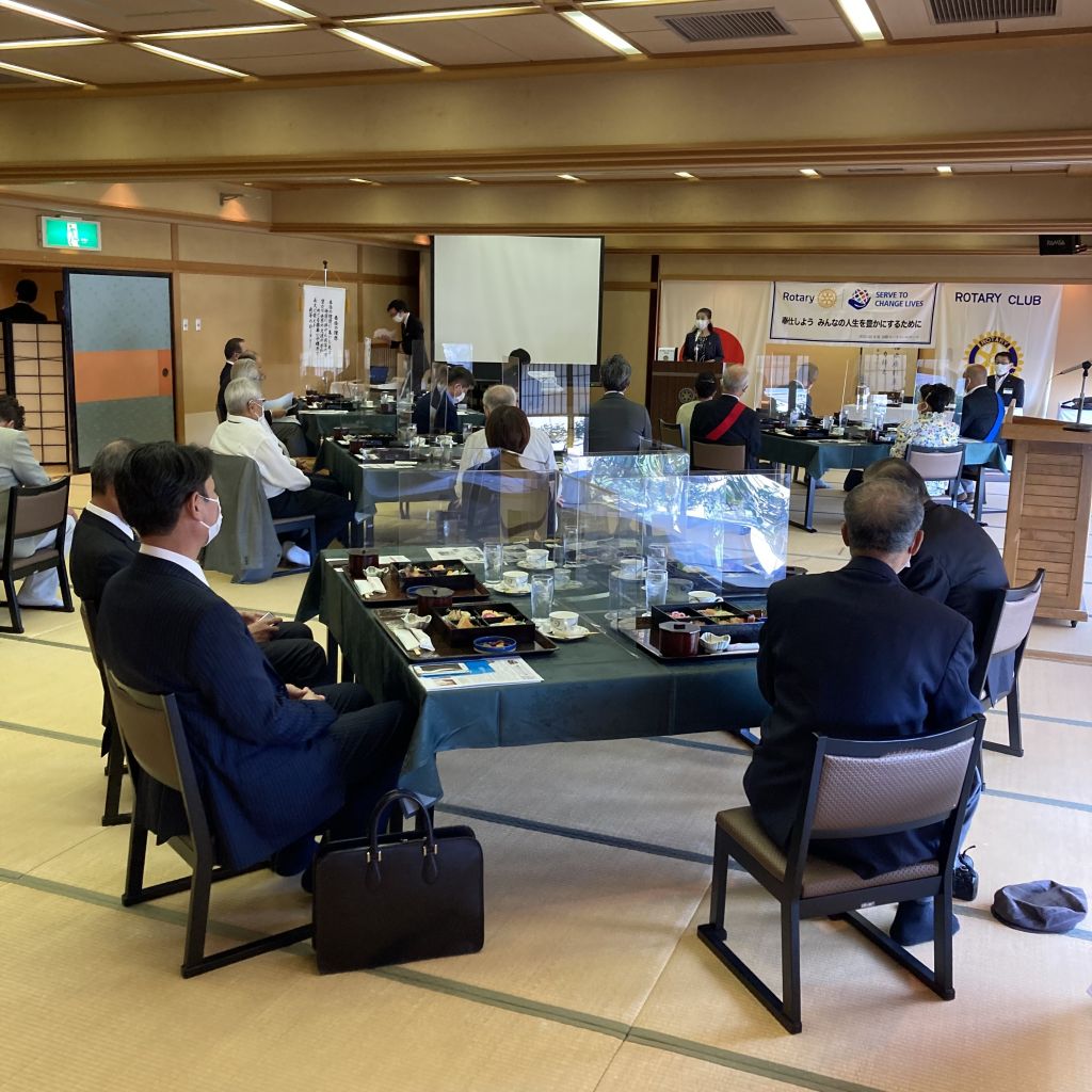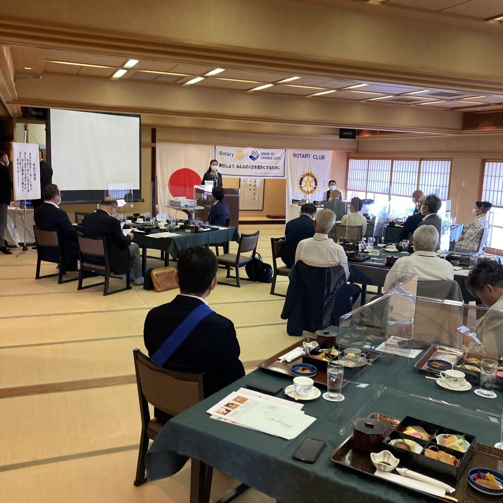 10/7(木)第15回(通算第1384回)例会を開催しました。今回は例会場ハイマートの4階での開催です。宮田パスト会長がソングリーダーで「君が代」と「奉仕の理想」を斉唱したあと、稲葉会長のご挨拶がありました。会員誕生日は、佐藤会長エレクト、会員ご夫妻誕生日は、佐藤会員ご夫人、小池会員のご夫人でした。「謙信出陣」の斉唱をし、食事となりました。卓話は、荒川米山奨学委員の米山卓話でした。