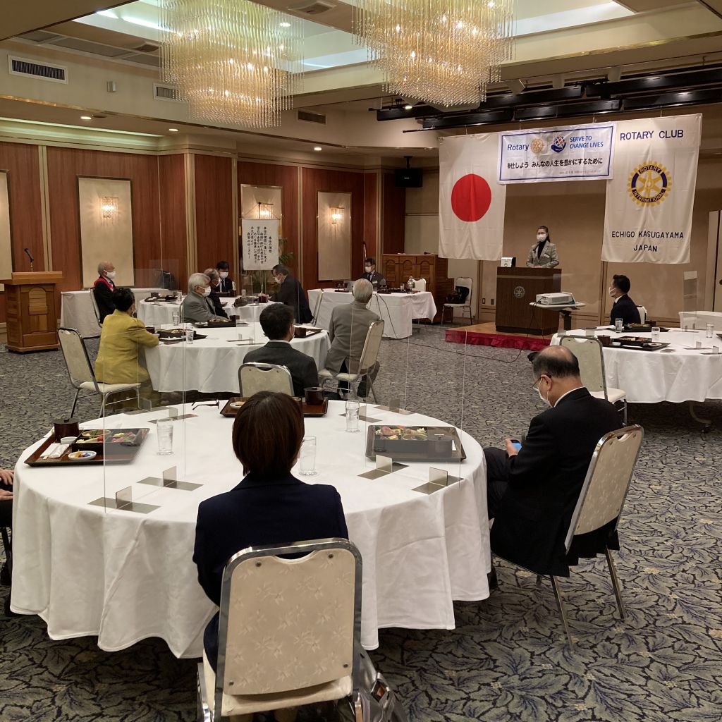 10/21(木)第17回(通算第1386回)の例会を開催しました。今回は、クラブ総会(臨時)とMillionDollarMealの日です。稲葉会長からの挨拶がありました。会員誕生日は、保坂パスト会長ご夫人です。IMに備え、越後春日山RCの歌を斉唱しました。お食事をはさみ、クラブ総会となりました。次年度の幹事が荒川会員ということで第1号議案は承認されました。