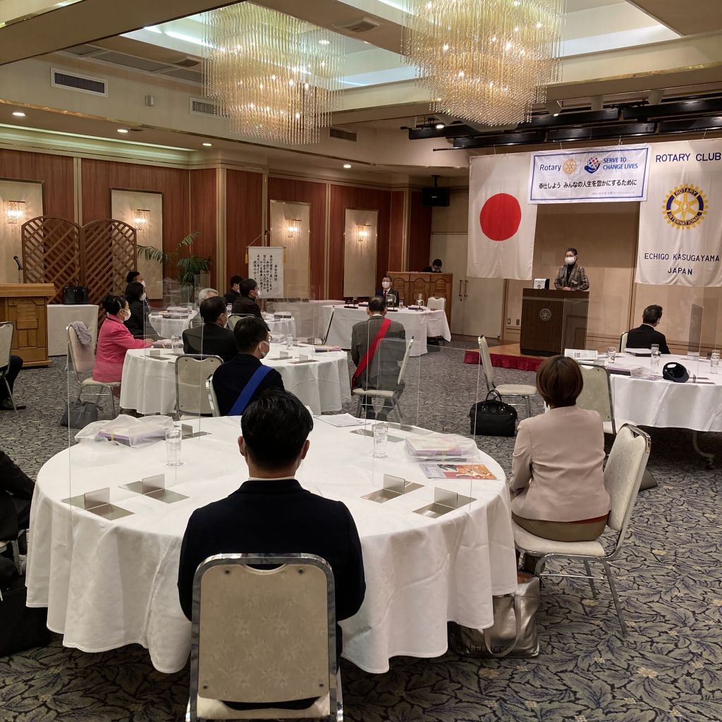 新年あけましておめでとうございます。本年もよろしくお願いいたします。2022年1月13日(木)第29回(通算1398回)例会を開催しました。新年初例会で短縮例会となります。小池ソングリーダーの指揮のもと国歌とRCソングを斉唱しました。稲葉会長からのご挨拶がありました。本日のセレモニーでは、会員ご婦人誕生日ということで、風間パスト会長と峯村パスト会長のご婦人でした。幹事より今月の3RC合同例会延期の話など連絡事項がありました。昼食は持ち帰りのお弁当となりました。外は雪が降り続いておりますが会員の皆様、お気をつけてお帰りください。