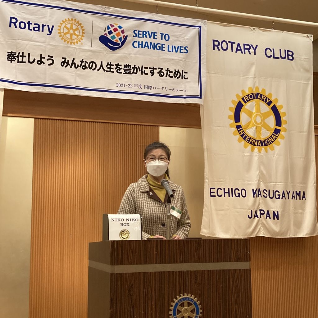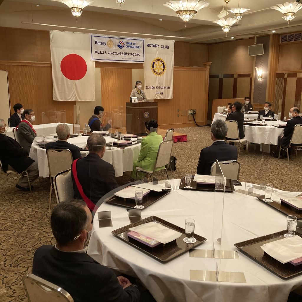 1月27日(木)第31回(通算1400回)例会を開催しました。今回も短縮例会となりますが、中川上越市長から新春講和という形でお話しがありました。稲葉会長からの挨拶の後、本日のセレモニーとして、会員誕生日は秋山パスト会長と、河野パスト会長のご婦人でした。秋山パスト会長からは100歳まで生きて脳と体のトレーニングの本を出版したいというお話がありました。新春講和の中川上越市長は、例としての春日山城の通年観光としての拠点整備と、上越妙高駅を中心としたIT等の集積地としての構想のお話がありました。魅力ある上越市にしていくには地元の人々の協力が不可欠であることを再認識しました。