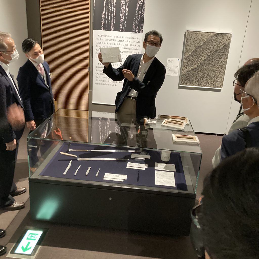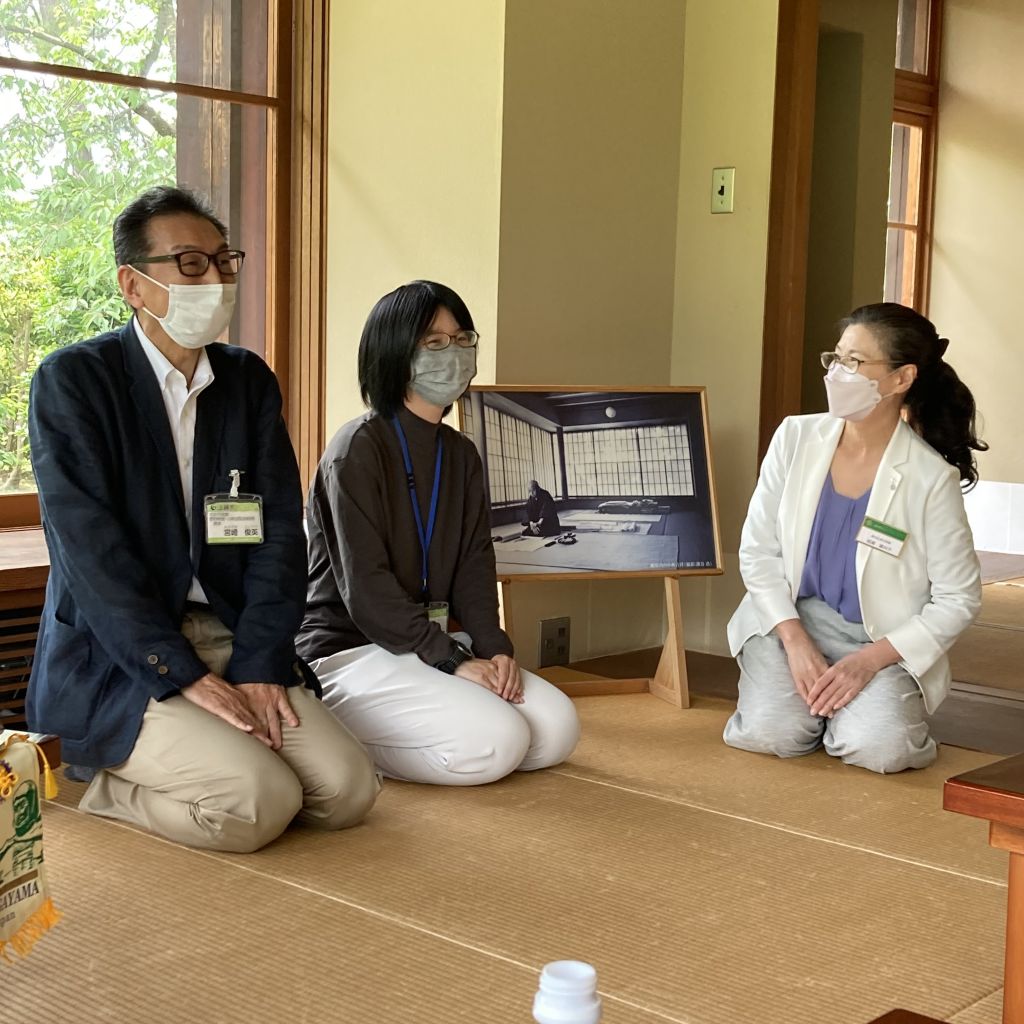 5/26(木)第47回(通算1416回)例会を開催しました。本日は、移動例会となります。場所は小林古径美術館です。隣の別館に集合しました。稲葉会長から挨拶がありました。本日の来訪者、セレモニーはありません。お弁当をいただきながら、美術館館長の宮崎様と、学芸員の小川様からご挨拶がありました。後ほど美術館で開催されている小林古径の常設展と富岡総一郎の特別展の鑑賞があります。お弁当の後には、お茶がふるまわれました。和菓子もいただました。例会終了後、美術館へ移動し、学芸員からの説明を受けました。隣の富岡総一郎の展示では、宮崎館長から富岡総一郎の技法についてレクチャーがありました。ロータリー会員各位は、その技法を間近に拝見しそのち密さに感動していました。皆様ご苦労様でした。