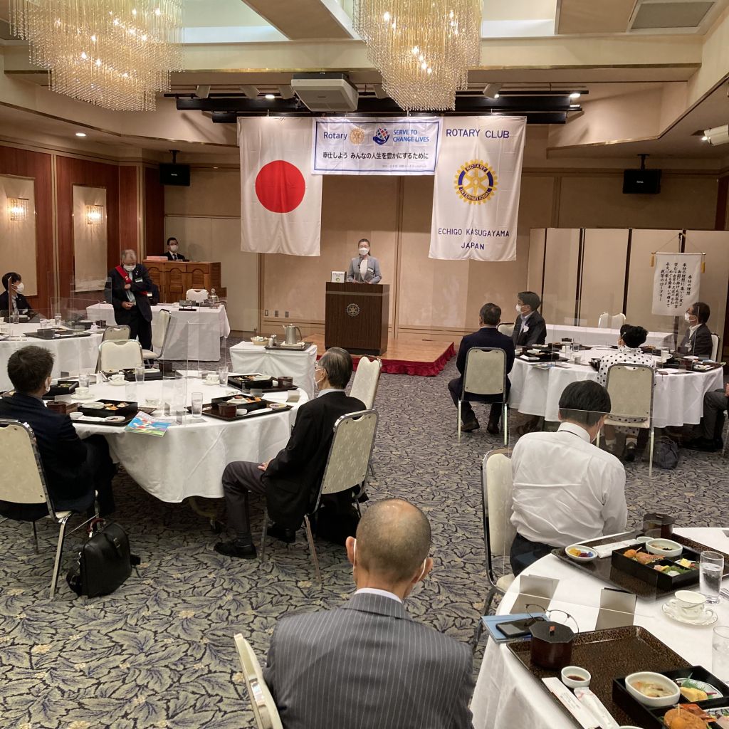 6/2(木)第48回例会を開催しました。月初のため、小池ソングリーダーのもと、国家とRCソングの斉唱がありました。その後、稲葉会長からの挨拶がありました。第7分区ガバナー補佐エレクトの本山秀樹様が来訪され、次年度ガバナーの方針等の説明がありました。本日のセレモニーは齋藤会員誕生日でした。昼食をはさみ、上越市の教育長、早川義裕様から卓話を行っていただきました。教員の働き方改革から教育現場の話まで教育界における課題についてわかりやすくお話いただきました。ありがとうございました。