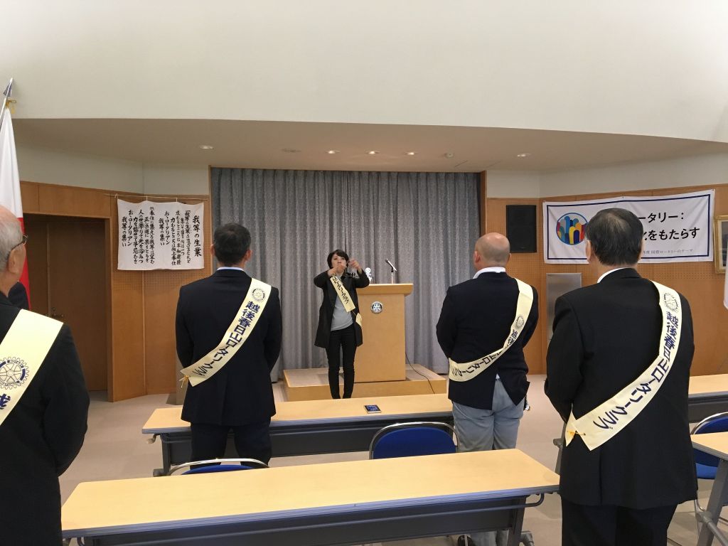 そして、本日のプログラムでは、11月25日(土)に移動例会で伺った、「米山梅吉記念館の訪問を終えて」と題し、参加した会員が報告をしました。