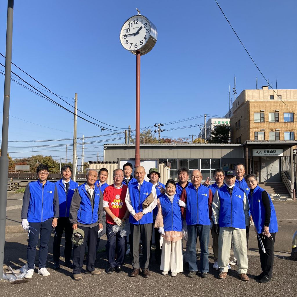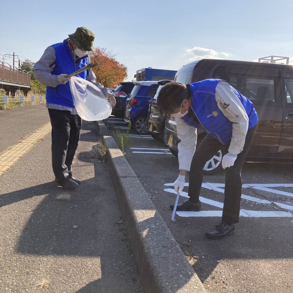 11/10(木)第18回(通算第1440回)例会を開催しました。本日は例会後、春日山駅周辺の清掃活動となります。月初めということで国歌斉唱がありました。清水ソングリーダーの指揮です。佐藤会長から挨拶がありました。来訪者の紹介では、高田ロータリークラブから高坂会員がお越しになり、ロータリー財団への寄付の呼びかけとポリオの話がありました。本日のセレモニーでは藤田パスト会長と佐藤会員の誕生日で挨拶がありました。食事をはさみ例会終了後、春日山駅周辺の清掃活動となりました。気持ちのよい秋晴れの下、春日山駅前、駅周辺のごみ拾いや雑草除去等を行いました。記念写真は当クラブが15年前(長谷川パスト会長の時)に寄贈した時計の前にての撮影でした。皆様ご苦労様でした。