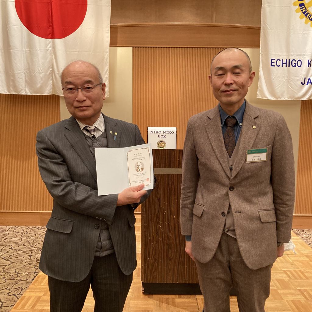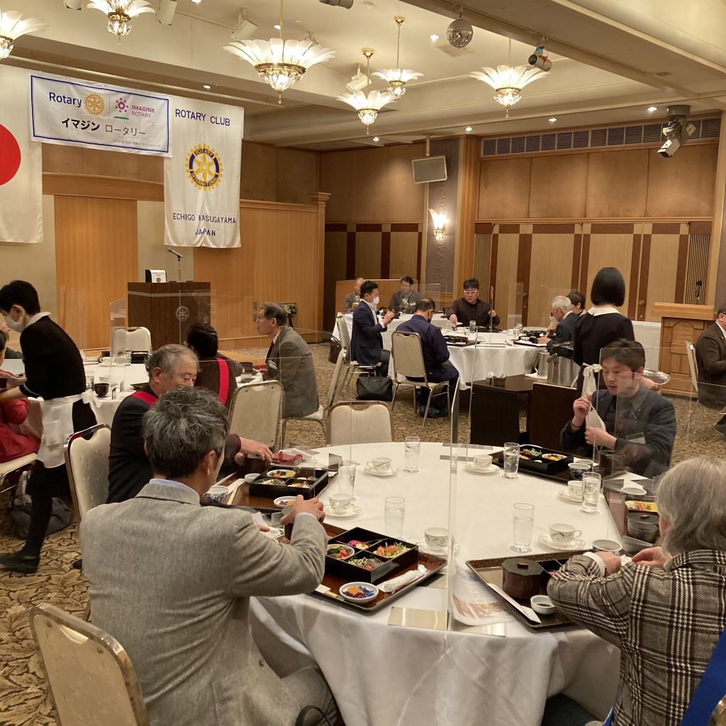 1/26(木)第30回(通算第1451回)例会を開催しました。雪の中23名もの会員が集まりました。はじめに佐藤会長から挨拶がありました。本日のセレモニーは、「米山功労者第3回マルチプル」ということで秋山パストが感謝状を授与しました。また会員誕生日も秋山パストとなり、記念の花が披露されました。昼食をはさみ、本日は会員卓話です。河野パストからはサラリーマン時代から会社起業までのお話がありました。楡井会員からは、上越地区の今後の医療体制や工場誘致についての話がありました。貴重なお話を拝聴できました。ありがとうございました。最後の写真は上越セントラルビルからの上越市内の状況です。それほど雪は積もりませんでした。