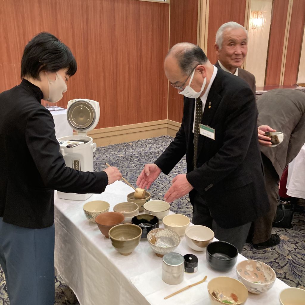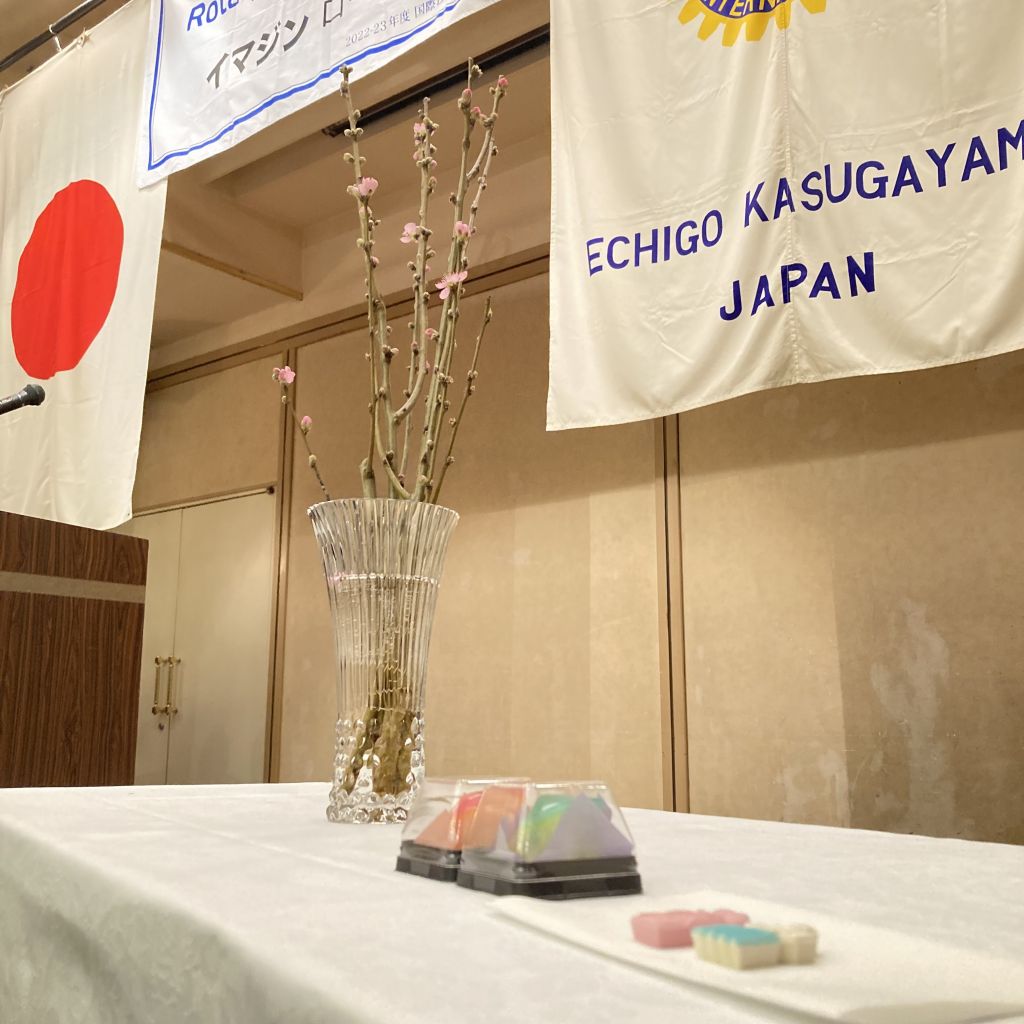 3/2(木)第35回(通算第1454回)例会を開催しました。本日はひな祭り例会ということで卓話の時間を利用し茶道お点前体験となります。月始め例会につき小池会員のソングリーダーの元、君が代とロータリーソングの斉唱がありました。佐藤会長から挨拶がありました。本日のセレモニー、会員誕生日は大嶋パストでした。昼食をはさみひな祭り茶道お点前体験会となりました。稲葉パストからお点前のレクチャーがありました。左手を添え1という字を書くようにお茶をたてるということで会員は自らお茶をたて味わっていました。和菓子も大変おいしゅうございました。