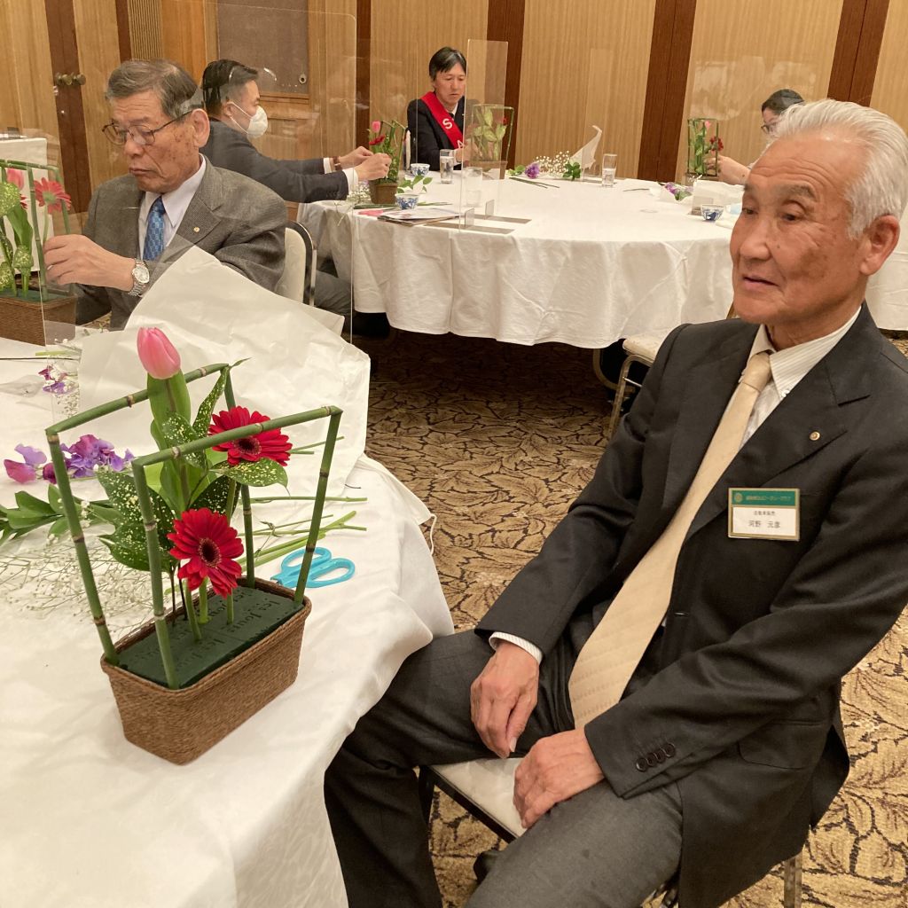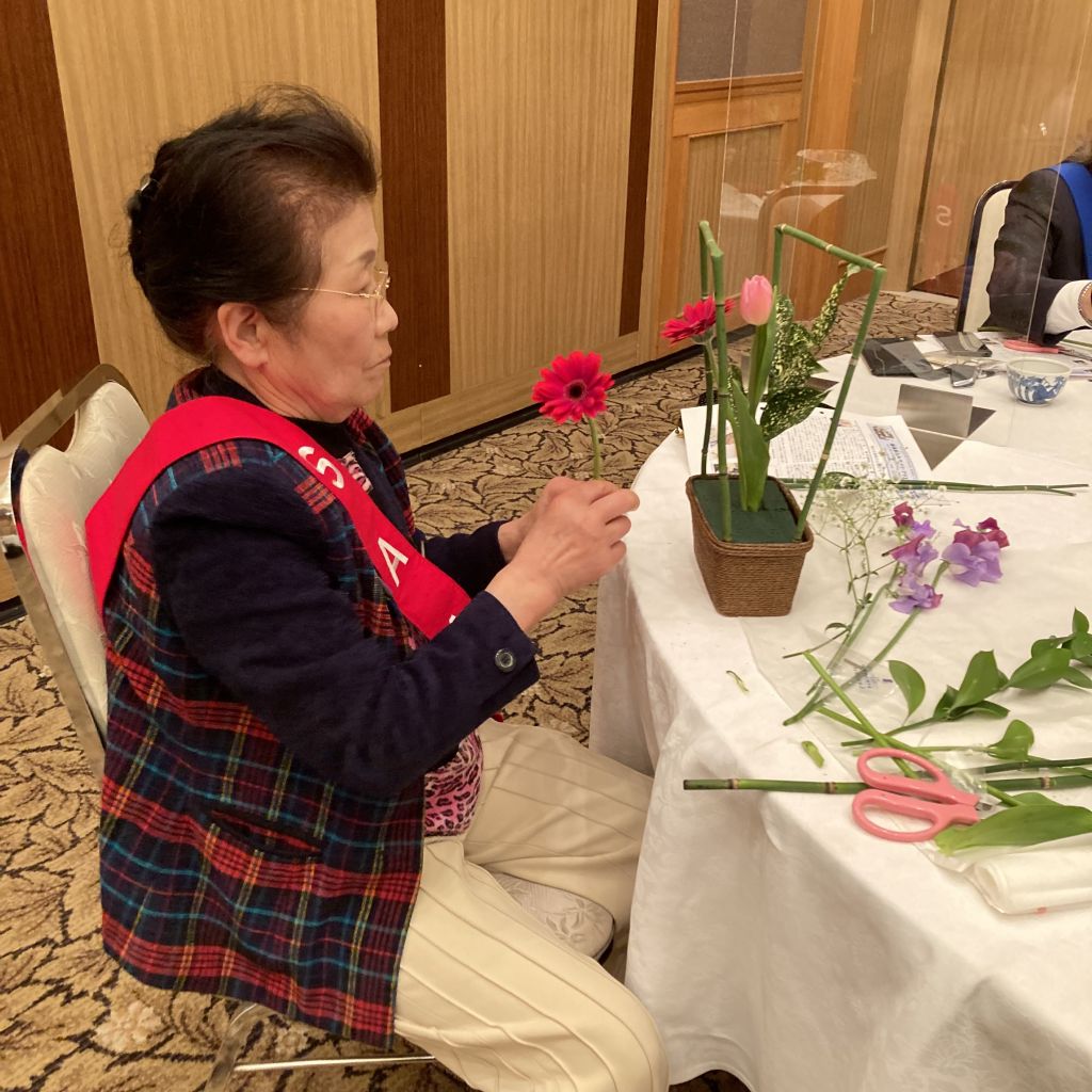 3/23(木)第38回(通算第1458回)例会を開催しました。本日はMillionDollarMealの日です。佐藤会長から挨拶がありました。WBC日本代表が世界一になったお話もありました。本日の来訪者は米山奨学生の許さんです。沖縄へ行きひめゆり学徒について勉強してきたという報告がありました。昼食をはさみ、本日はフラワーアレンジメント体験を小林幹事エレクトより提供していただきました。壁画のように花を活けるというその方法を1本ずつ確かめながら行いました。花の配置や土の部分を隠す等、普段何気なく見ているフラワーアレンジメントが実は奥深いということを再発見した体験会となりました。体験で作成したアレンジメントは各会員持ち帰りました。皆様ご苦労様でした。