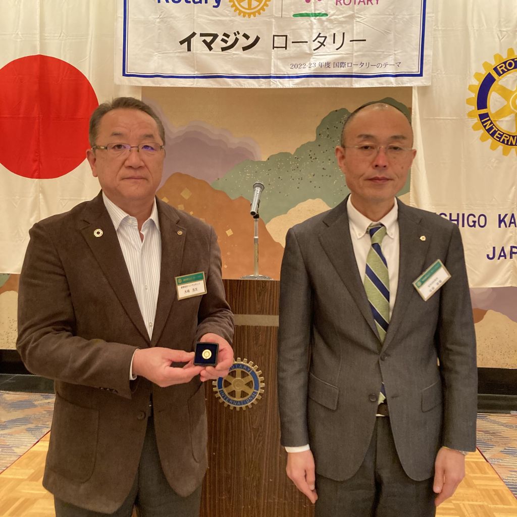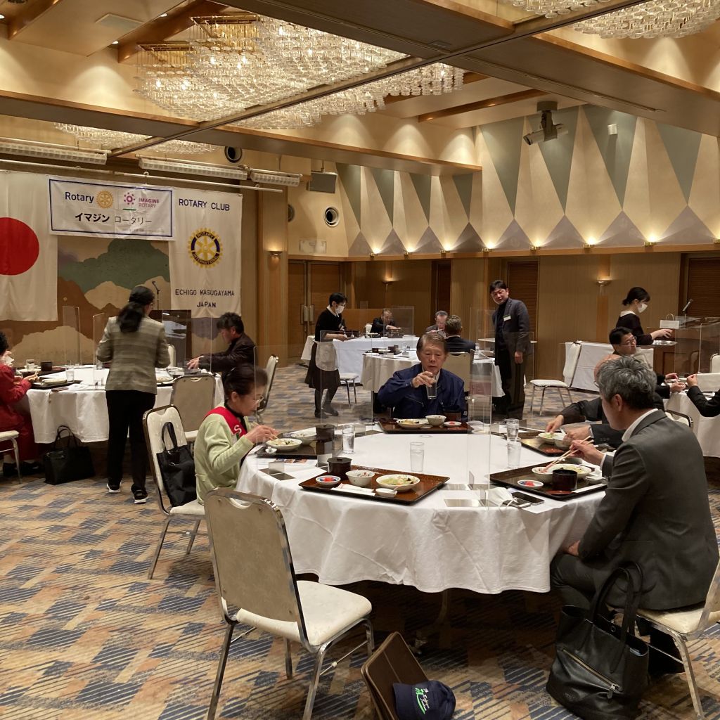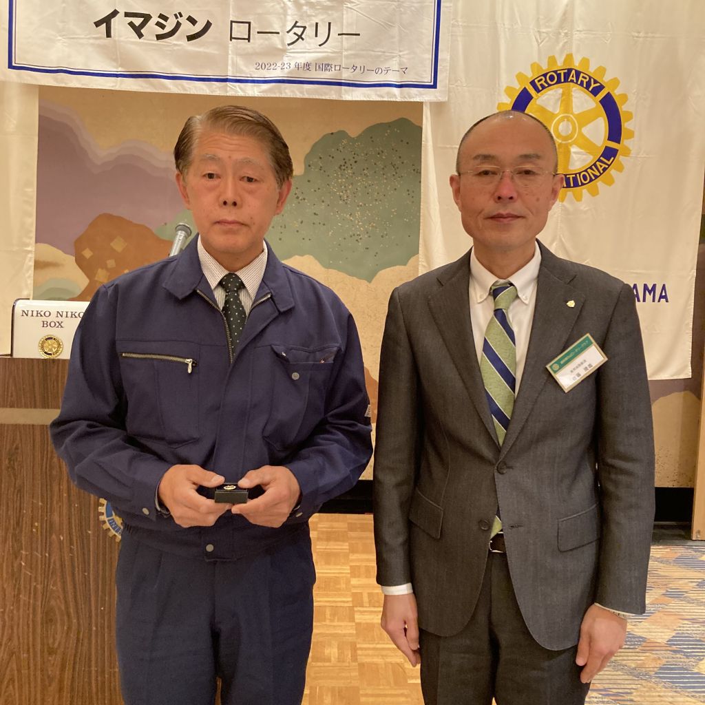 4/27(木)第43回(通算第1463回)例会を開催しました。今回は、MillionDollarMealの日です。佐藤会長から挨拶がありました。本日のセレモニーは、ポールハリスフェロー+1の記念バッチの贈呈があり、大嶋パストと大濱会員が登壇されました。会員誕生日は宮﨑会員です。昼食をはさみ、卓話は会員卓話で佐藤会長からはスキーのお話、稲葉直前会長からはご自身の経歴等のお話がありました。ご苦労様でした。