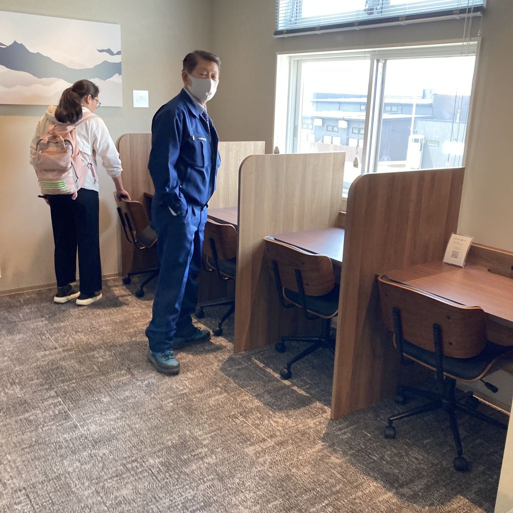 5/18(木)第46回(通算第1466回)例会を開催しました。今回は移動例会として、上越妙高駅東口に今春オープンしたレンタルスペース「NEST-ONE」で行いました。佐藤会長から挨拶がありました。来訪者は米山奨学生の許さん。スマイルの紹介、委員会報告があり例会を終了。昼食をはさみ臨時のクラブ総会がありました。次年度のクラブ奉仕委委員長と社会奉仕委員長の変更が了承されました。例会後、レンタルスペースの施設見学がありました。コワーキングスペースや個室、会議室等が大変充実しており、法人メンバーになれば割安で利用できるということでした。シャワー室もあります。会員の皆さんはそれぞれのスペースをじっくり見いっていました。レンタルスペースは建物の2階部分のみで、1階は施設オーナーでもある企業のお弁当屋さんとなります。ひさし部分は雁木をイメージしているそうです。