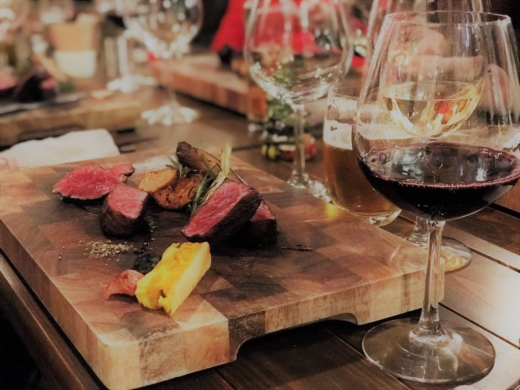 ディナーでは美味しそうなお肉料理が