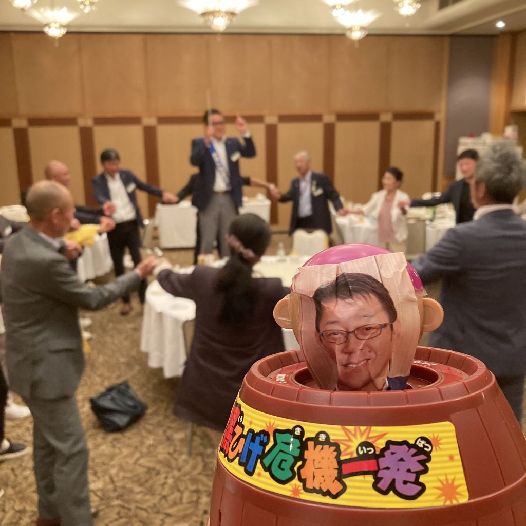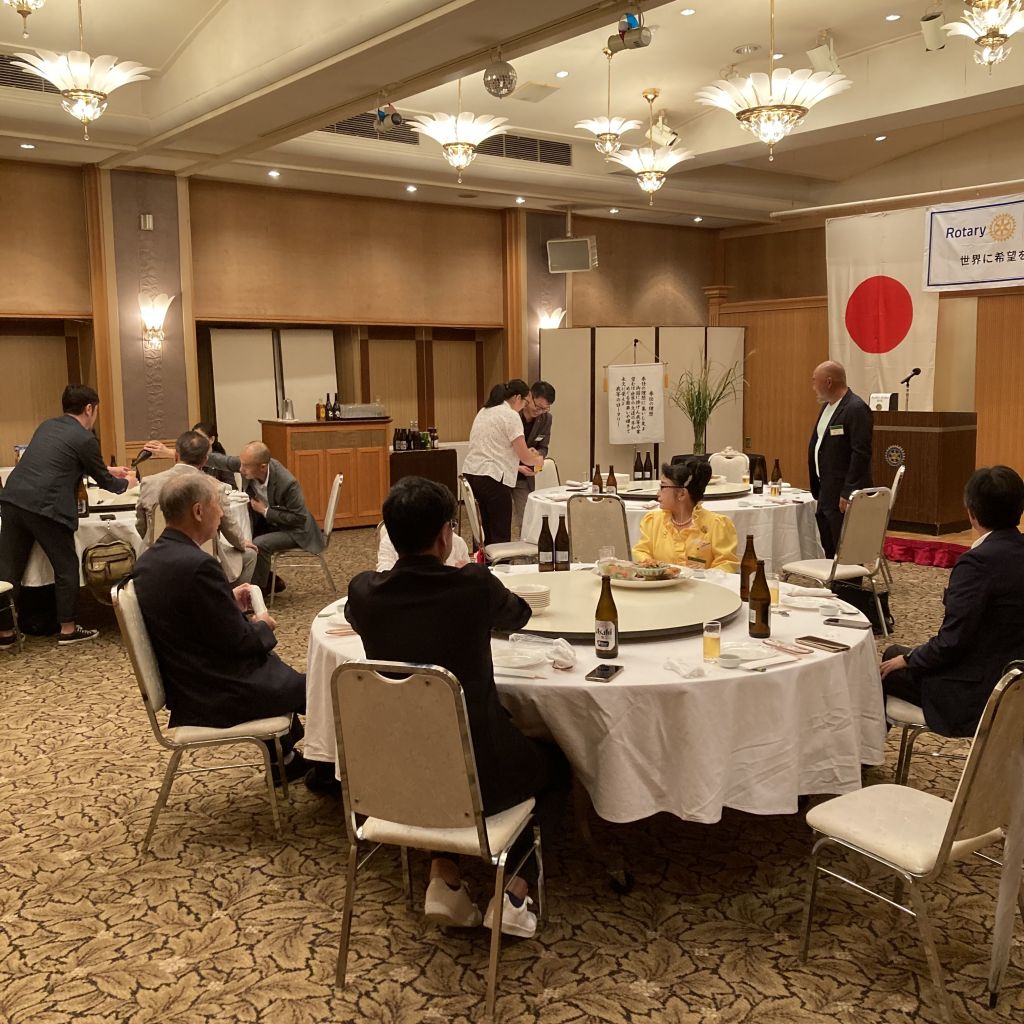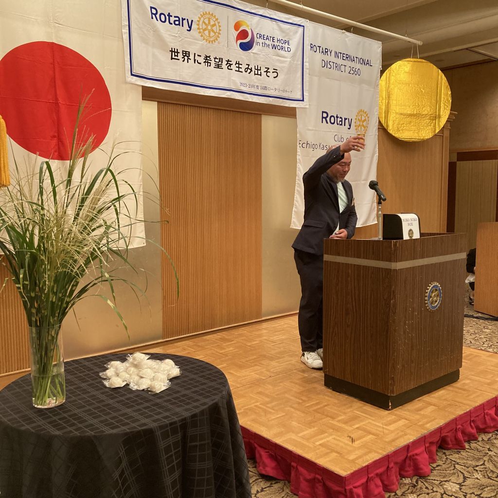9/21(木)第12回例会を開催しました。9/29が中秋の名月ということに合わせ、例会は、お月見夜例会となりました。会場には特別にススキと団子、そして大きな月が配置されました。徳道会長から挨拶があり通常の例会を終了し、懇親会へと展開しました。抽選で乾杯のご発声となった宮田会員。米山奨学生の許さんも参加です。本日は、当クラブのゴルフ同好会主催のゴルフ会(@松ヶ峯カントリー倶楽部)でしたので、ゴルフの成績発表となりました。ぺリアを制したのは徳道会長。満面の笑みです。また懇親会では、テーブルごとに俳句を考え、それを親睦委員会の小池委員長が句を読み上げ、徳道会長が優秀賞を決定する催しが行われました。誰が作った句かは内緒での発表です。長谷川会員の句が見事、優秀賞ということになりました。その後恒例?の徳道会長危機一髪ゲームとなり。全部のテーブルが見事徳道会長を拾い上げ勝ちとなりました。閉めの挨拶は、抽選で決まった内山会員。最後は手に手をつないでで懇親会を終わらせていただきました。皆様ご苦労様でした。