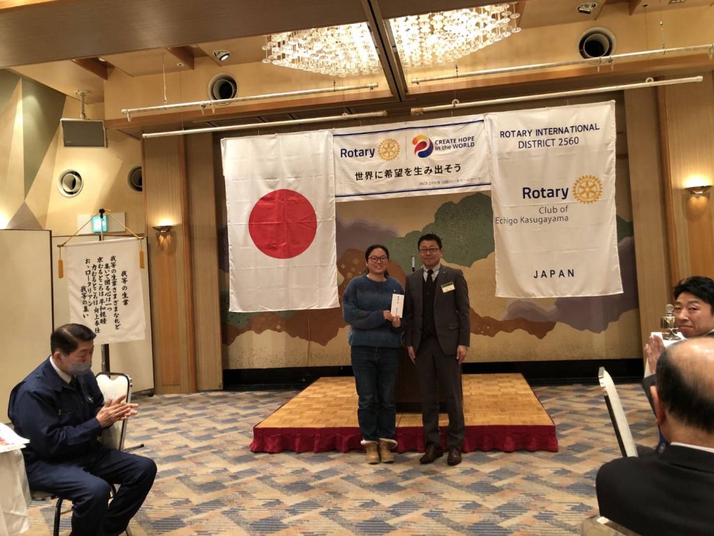 1/11(木)第28回(通算第1500回)例会を開催しました。新しい年が明け、元日には能登半島地震が発生しました。被災されました皆さまに心からお見舞いを申し上げます。一日も早い復興を祈念しております。本日の例会には米山奨学生の許雲霞さんも出席され、会長から奨学金が手渡されました。また、本日は会長、風間社会奉仕委員長のご夫人、河野会員のご夫人の誕生日セレモニーがありました。委員会報告では、風間社会奉仕委員長から先月行ったクリスマス家族例会のチャリティーで集まった募金額と、その全額をフードバンクに寄贈する報告がありました。後日、贈呈式を開催する予定です。そして、本日は新年初例会のためクラブ協議会が行われ役員・理事、委員長から前期の振り返りと、後期の計画などの発表がありました。本年も、どうぞよろしくお願いいたします。