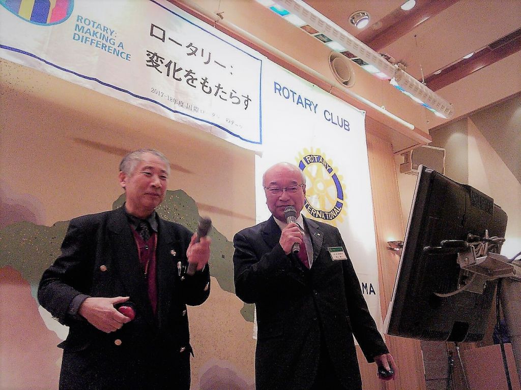 日馬会長の挨拶は、1月が、「職業奉仕を強調する月間」ということで、国際ロータリーの「全分野の職業人のための倫理訓」第1条から第11条を朗読しました。