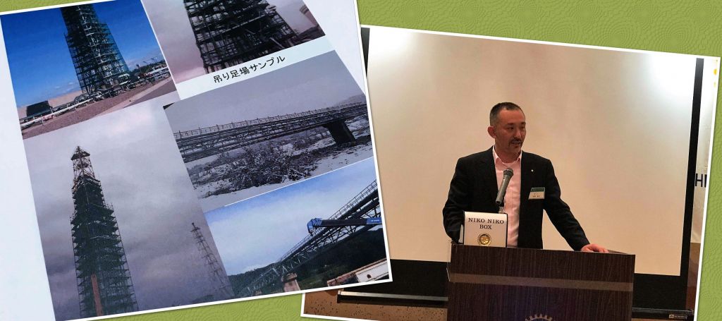 卓話では高橋会員がご自身の事業である「鳶(とび)」について語りました