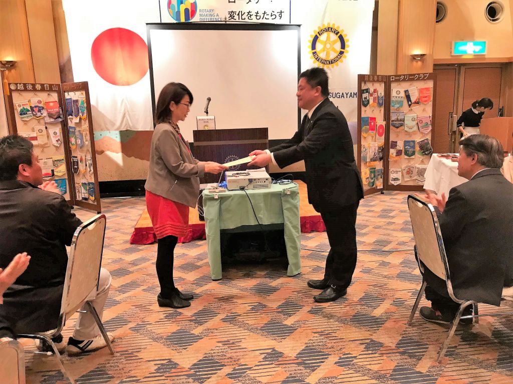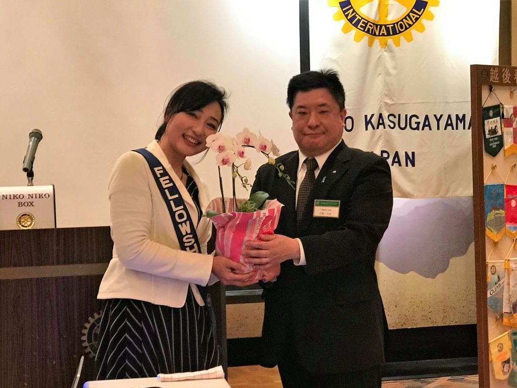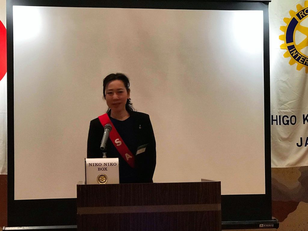 宮崎朋子会員は、「当クラブを代表して委員会活動への積極的な参加することや、当クラブがロータリー財団に貢献できるような取り組みをして行きたい」と、決意を述べました。