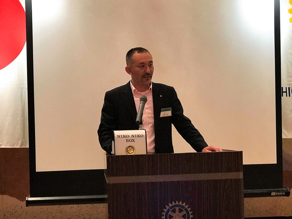 日馬会長の挨拶で、先日行われたRI2560地区の会長幹事会議において近隣クラブの周年事業や、第7分区からガバナーが輩出される件、そして、次年度以降の予定などを報告しました。