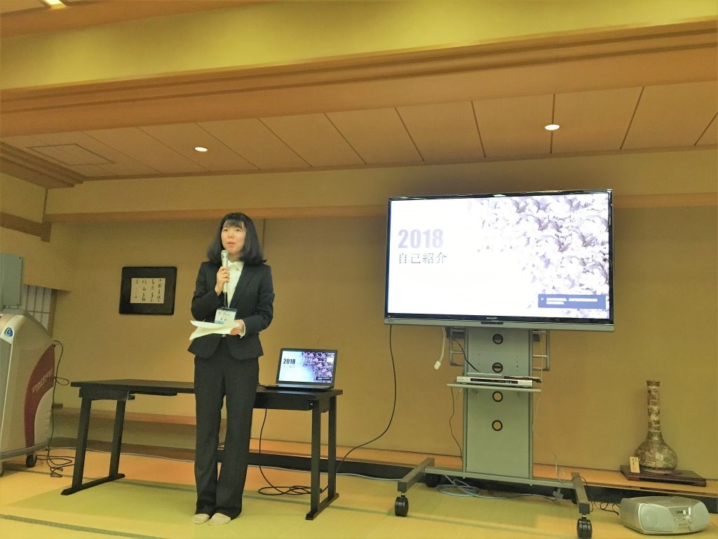 パワーポイントを使って自己紹介する趙嘉鈺さん