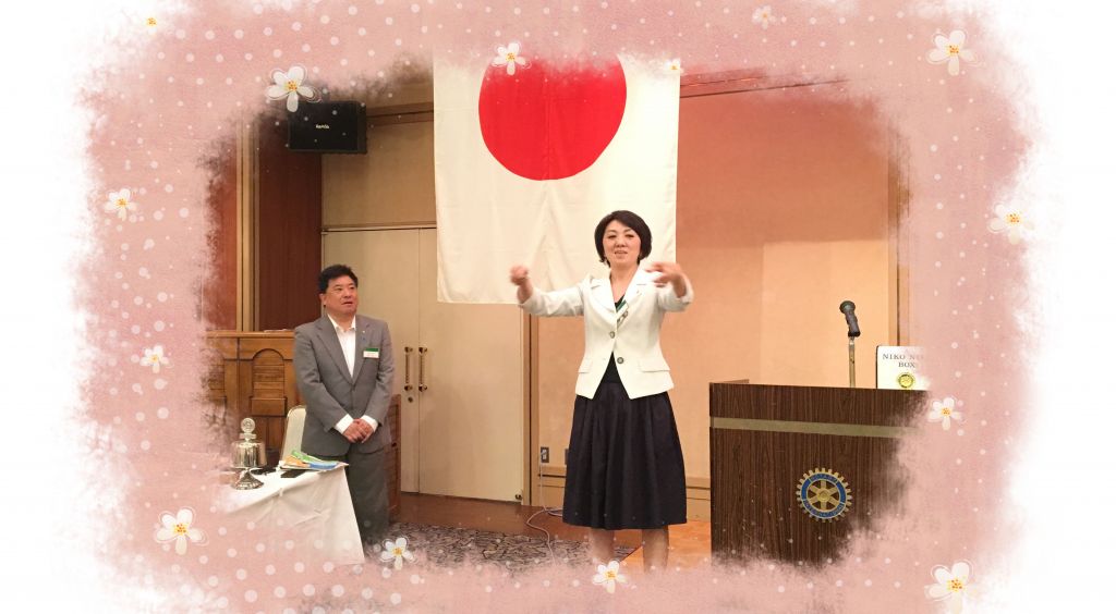 月の最初の例会ということで、白石絵理会員の指揮の下に、国家と奉仕の理想を斉唱しました。日馬会長の挨拶でも、最終月に入いり「今年度も、あともう少し」というニュアンスが所々で聞こえ、いよいよ日馬・田辺年度も総決算のときを迎えたと述べました。
