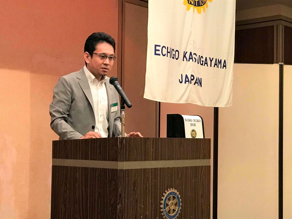 本日の卓話フォーラムは、会員卓話で内山勇人会員の登場でした。内山会員が、理事長を務める認定NPO法人くびき野NPOサポートセンターの業務について紹介しました。