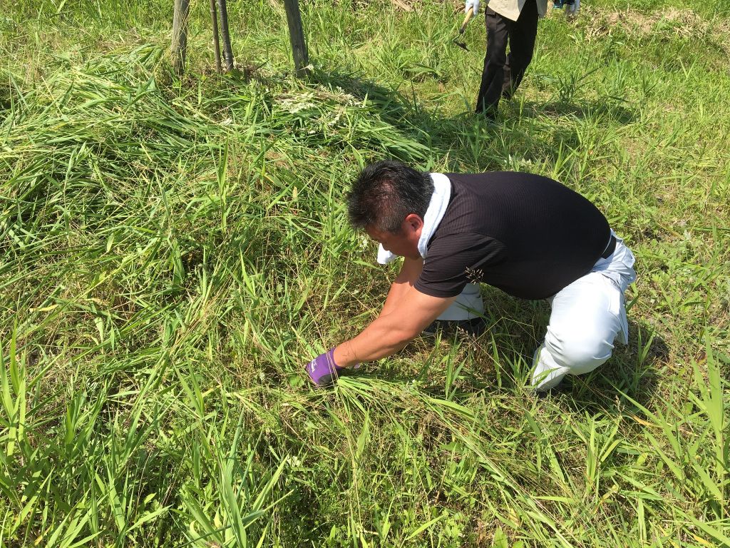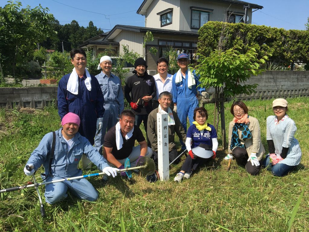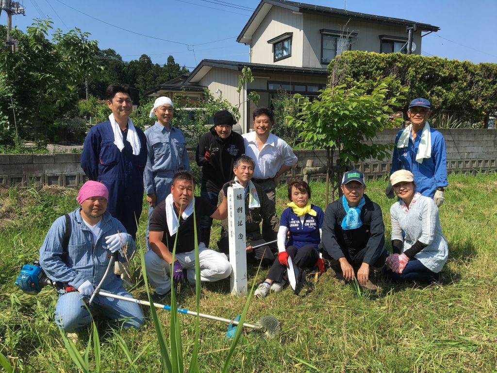 6月7日(木)、例会が終了した午後2時より毎年恒例となっています上越市埋蔵文化財センターの敷地内に寄贈しました桜の木の手入れと周辺の草刈り作業を行いました。
