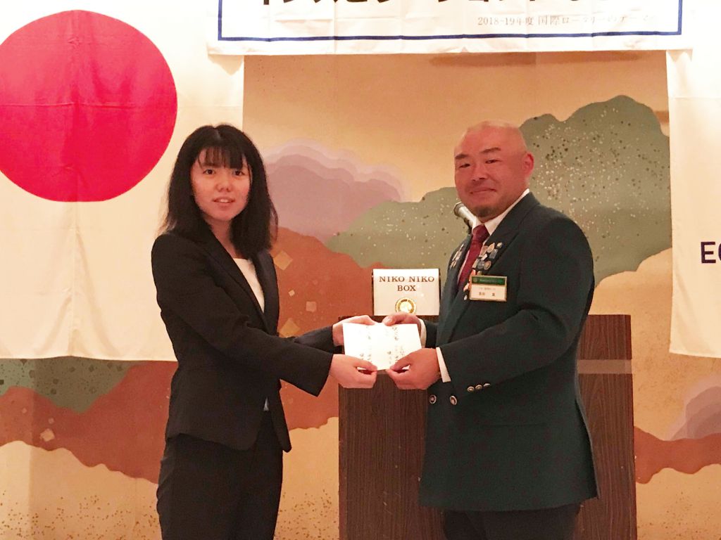 宮田会長より趙嘉鈺(ちょかぎょく)さんへ奨学金が手渡されました
