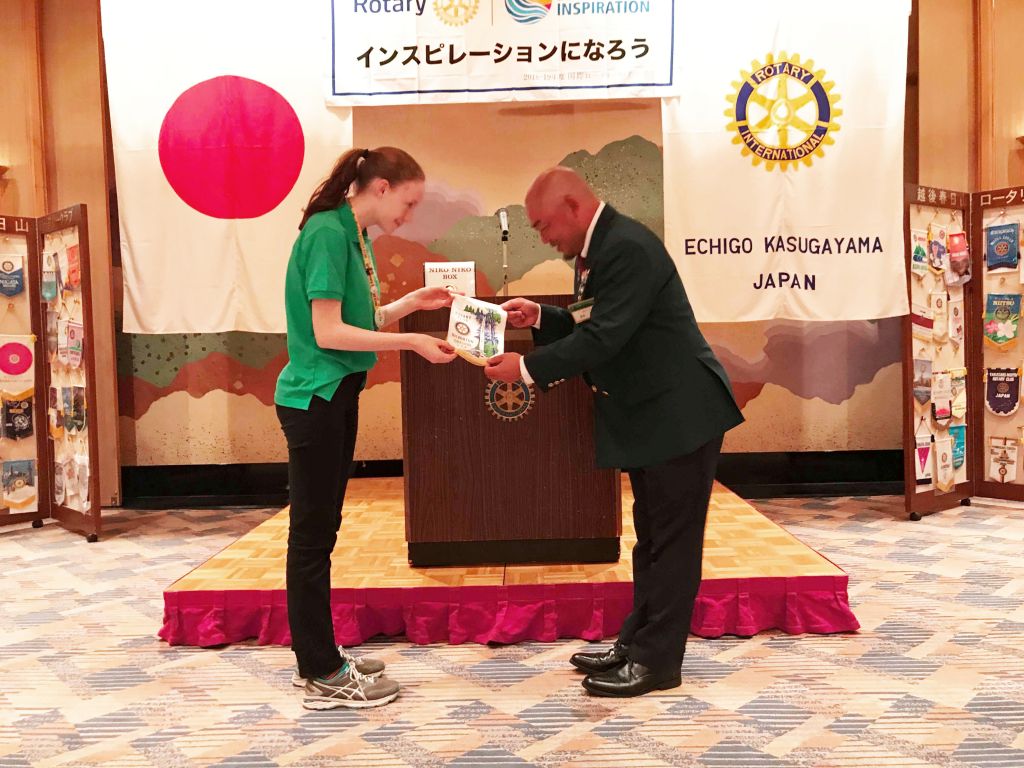 本日は、アメリカからの短期留学生のシェリーズマッケンジーホワイトさんと米山奨学生の趙嘉鈺(ちょかぎょく)さんをお迎えし、賑やかでとても楽しい例会になりました。