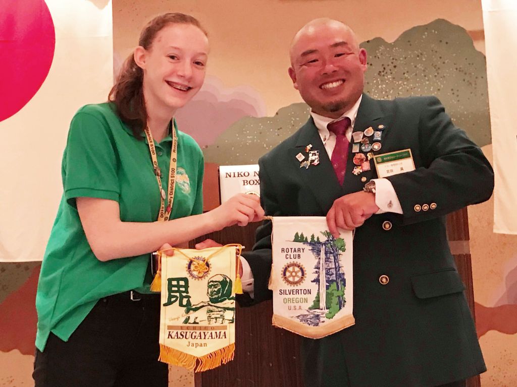 シルバートンロータリークラブのフラッグと当クラブのフラッグを交換