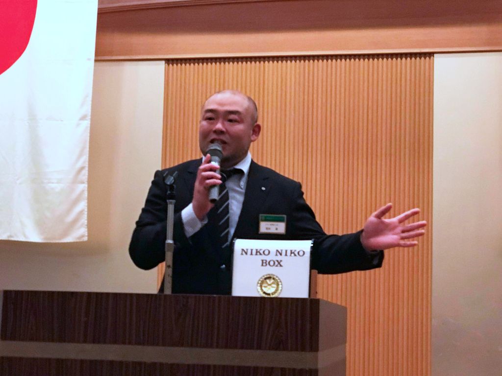 宮田会長から池亀達矢さんに向け、「この日を楽しみにしていました」という、激励の言葉から例会がスタートしました。