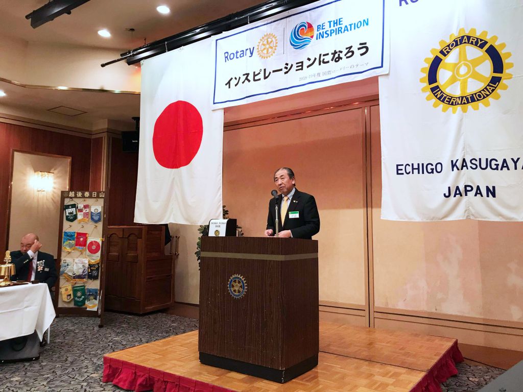 東京ロータリークラブは、1964年の東京オリンピックで聖火台の台座を寄贈し、その後の1972年の札幌オリンピックの聖火台は全国のロータリークラブが寄贈したものというエピソードを紹介され、11月11日(日)に行われるRI2560地区大会には2020年東京オリンピックの招致委員で、東京ロータリークラブの水野正人(みずのまさと)様が基調講演をされるため、1人でも多くの方に参加して欲しいと呼びかけられました。