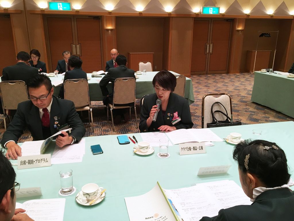 クラブ協議会では、各委員会の委員長がそれぞれの事業方針や事業計画を発表し、関川地区幹事と宮下第7分区ガバナー補佐から各委員会毎にご指導と、全体を通して総評をいただきました。