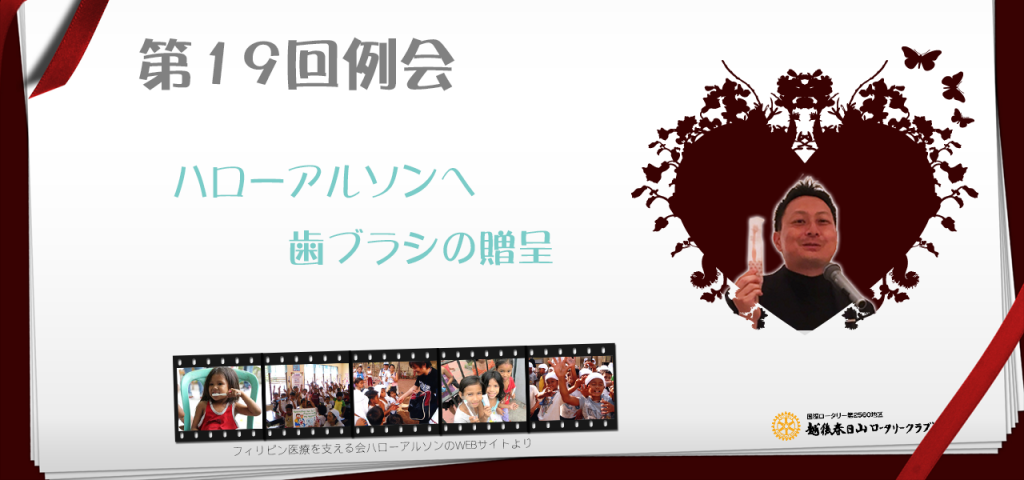 昨年の10月の例会で、羽尾歯科医院の羽尾医院長からハローアルソンの取り組みついてご講和をいただきました。