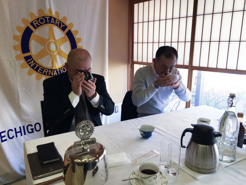 例年よりも雪の少ないこの時期ですが、例会の前には青空も広がり、本日の卓話フォーラムでは、長谷川パスト会長をはじめとする女性会員が中心となり、茶道を通じて日本人の作法を学ぶ、文化講座を行いました。