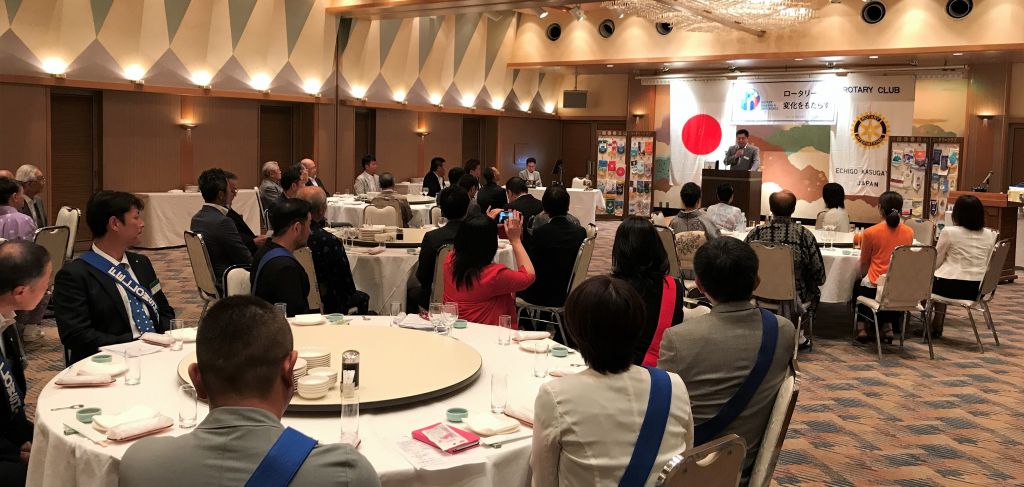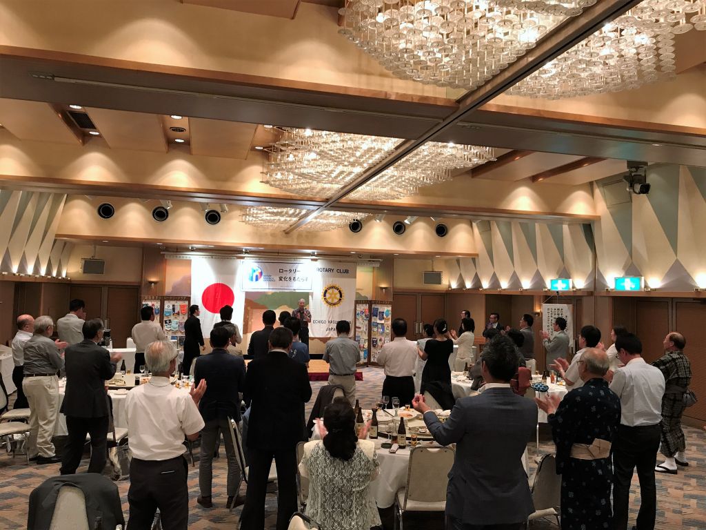 日馬会長の挨拶では、ロータリーの寄付行為について全世界で活躍する先輩ロータリアンの指導について述べました。今までは、「奉仕の理想の下に」というなんとなく漠然と感じてきたことに、事例を通してあらめて理解を深めることができました。