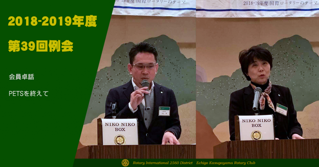 さて、先週は次年度のクラブ会長エレクト研修セミナーでありますPETS(Presidents-Elect Training Seminar、ペッツ)が開催されました。本日の卓話はPETS(ペッツ)の報告です。